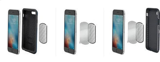 MAGICPLATE™, non-magnetic, adhesive-backed, metal plates, are an integral component of the MagicMount™ Magnetic Mount System for mobile devices. Just apply the MagicPlate as shown to the right and you are ready to use any one of the many MagicMount products available in this growing family of magnetic mounts. MagicPlates come in a variety of sizes and shapes depending upon which MagicMount you buy and replacement kits are also available. There are several ways to apply the MagicPlate to your device. Directly to the back of the case Directly to the mobile device Between the device and case - either with or with out using the adhesive