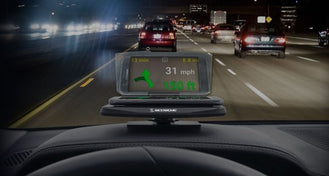 Taking your eyes off the road for even a second can be dangerous. This add-on heads up display allows you to reduce the amount of times you take your eyes off the road by adding your speed(MPH or Km/H), engine RPM and status indicators right to your windshield!