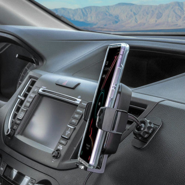 Enjoy the convenience of Qi-certified wireless fast charging using a secure, quick and easy to install, vent mount. Or if you prefer, use the included dash mount. With either option your phone remains in full view for safe hands-free use while driving.