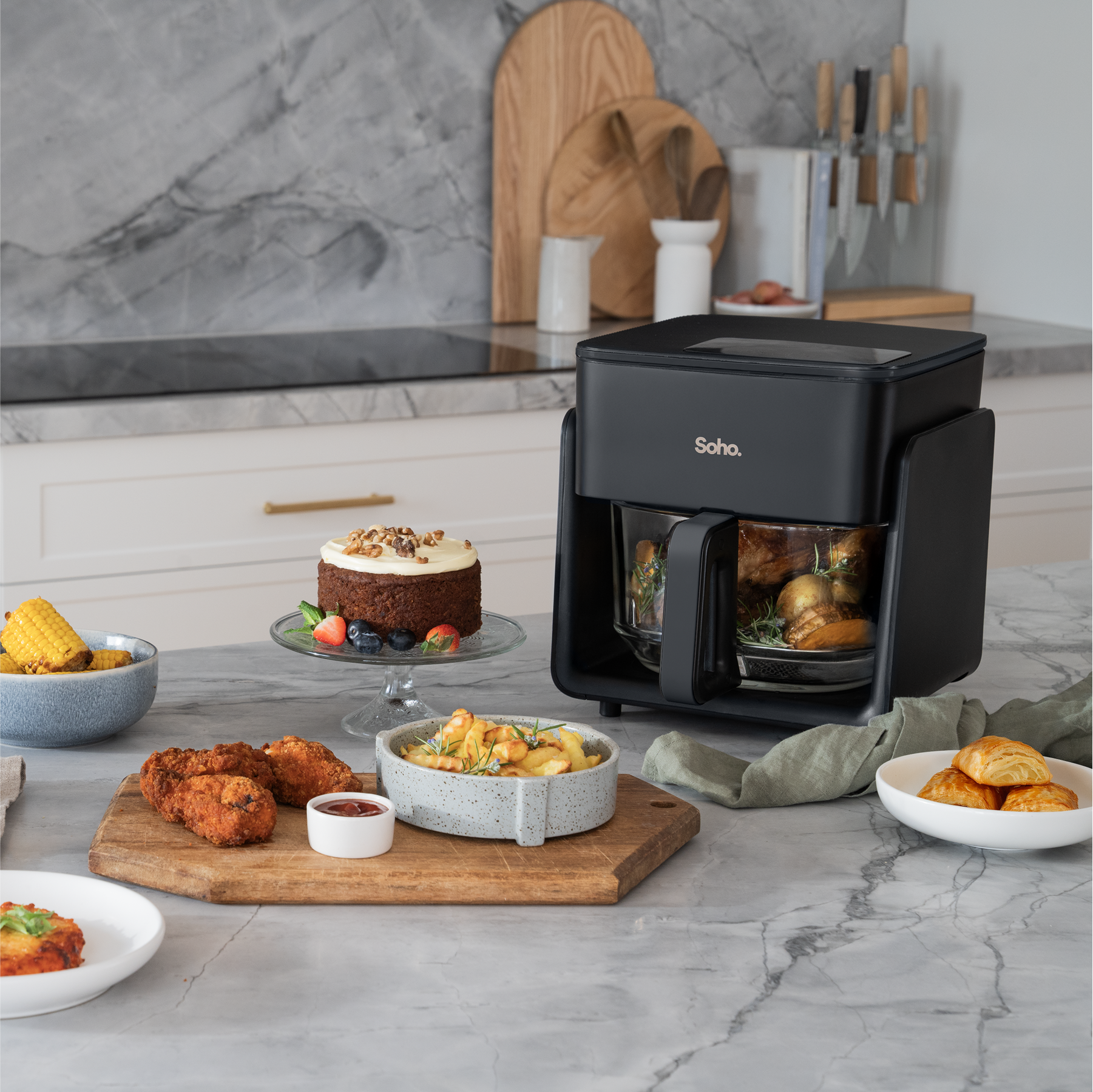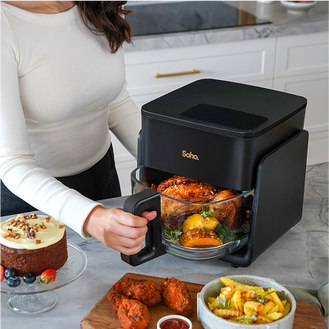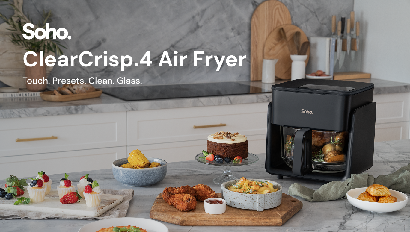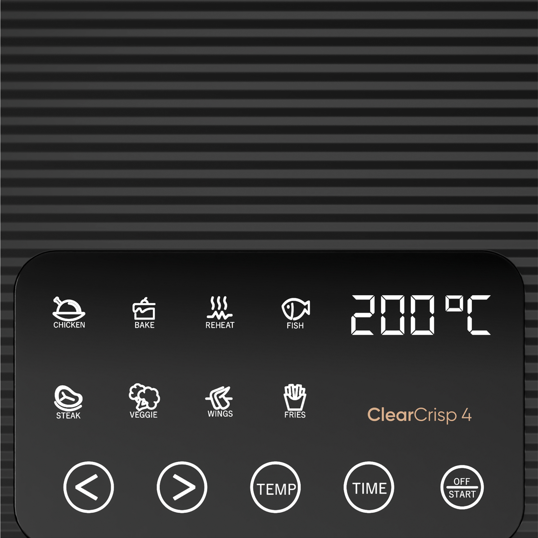 Enjoy healthy, tasty cooking with the ClearCrisp 4 Air Fryer. The glass container lets you clearly view progress without removal, so heat is retained for faster cooking. It also lets you serve without fuss. Eight touch control presets make it easy to create delicious results, plus you can customise your own settings. Thermal shock resistant glass handles going from frozen to crispy fast – the 4.5 litre capacity serves between 4 and 6 people.