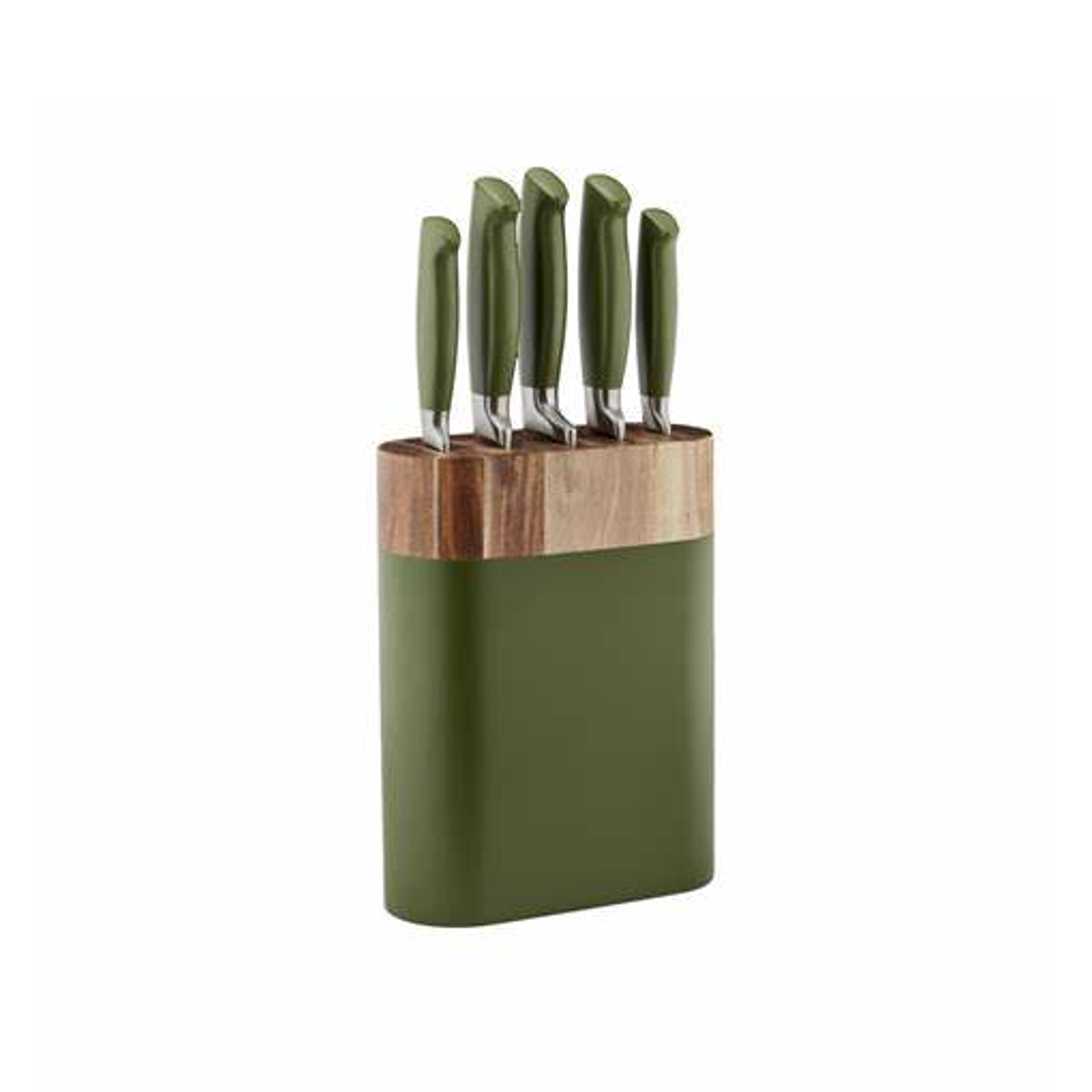 STANLEY ROGERS OLIVE OVAL KNIFE BLOCK 6PC