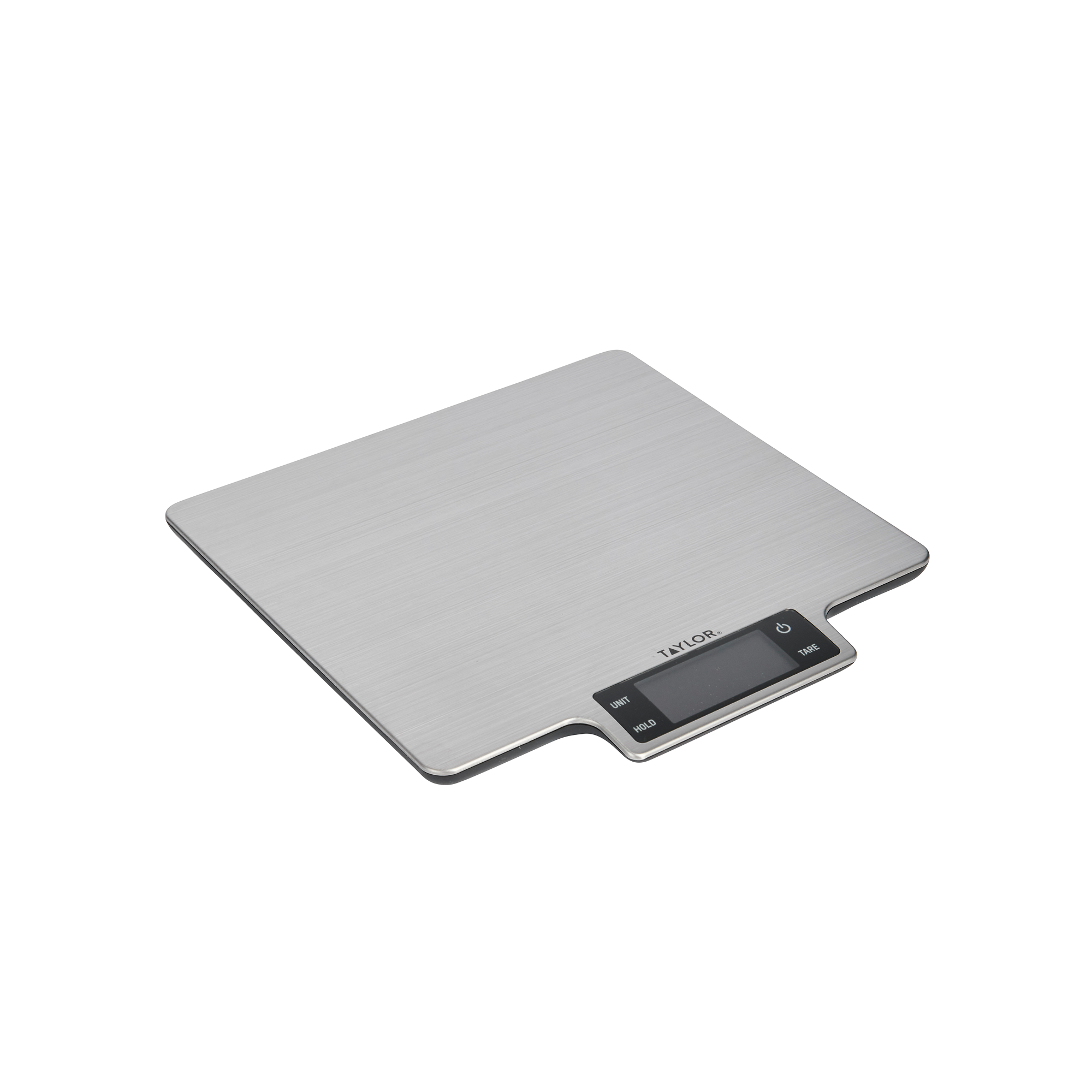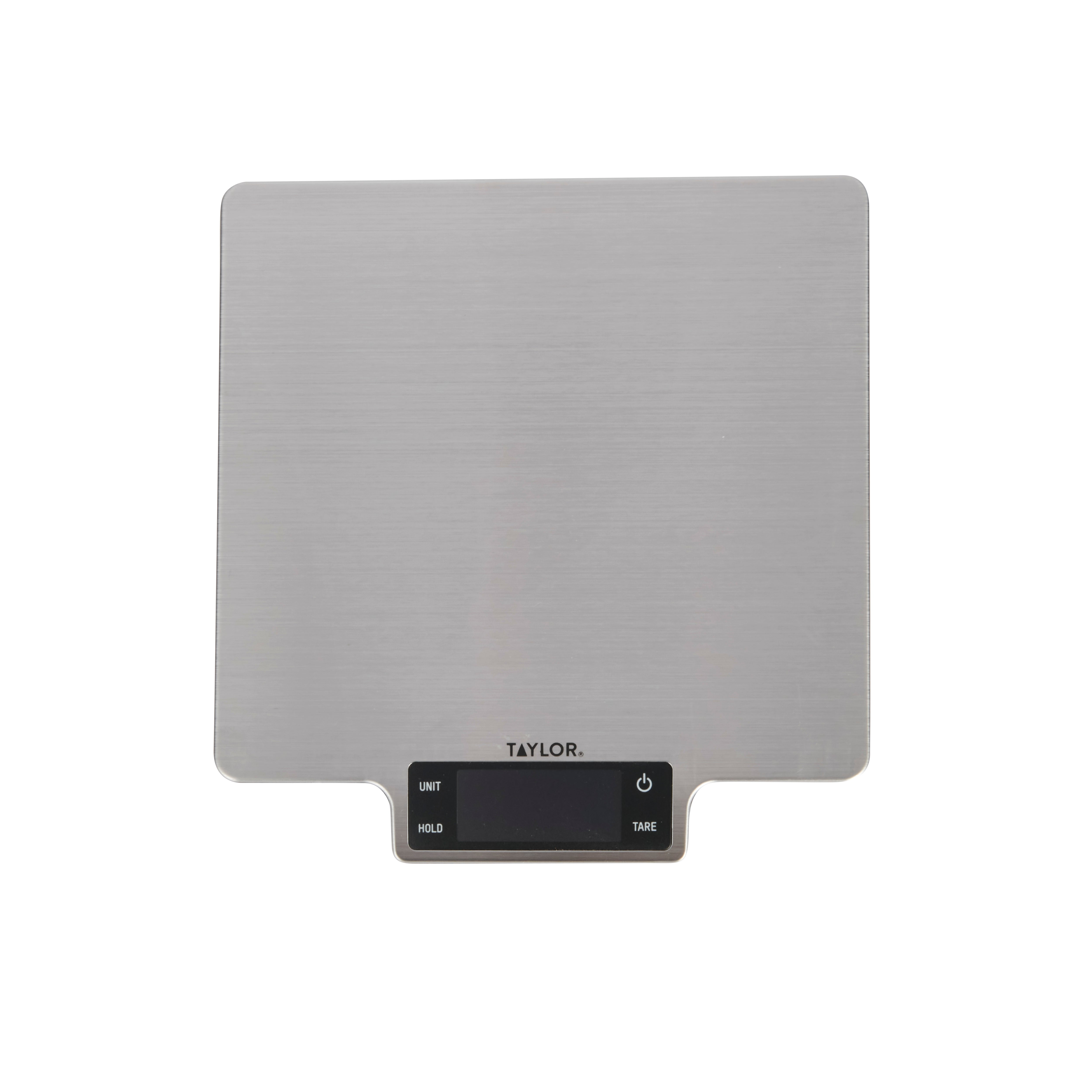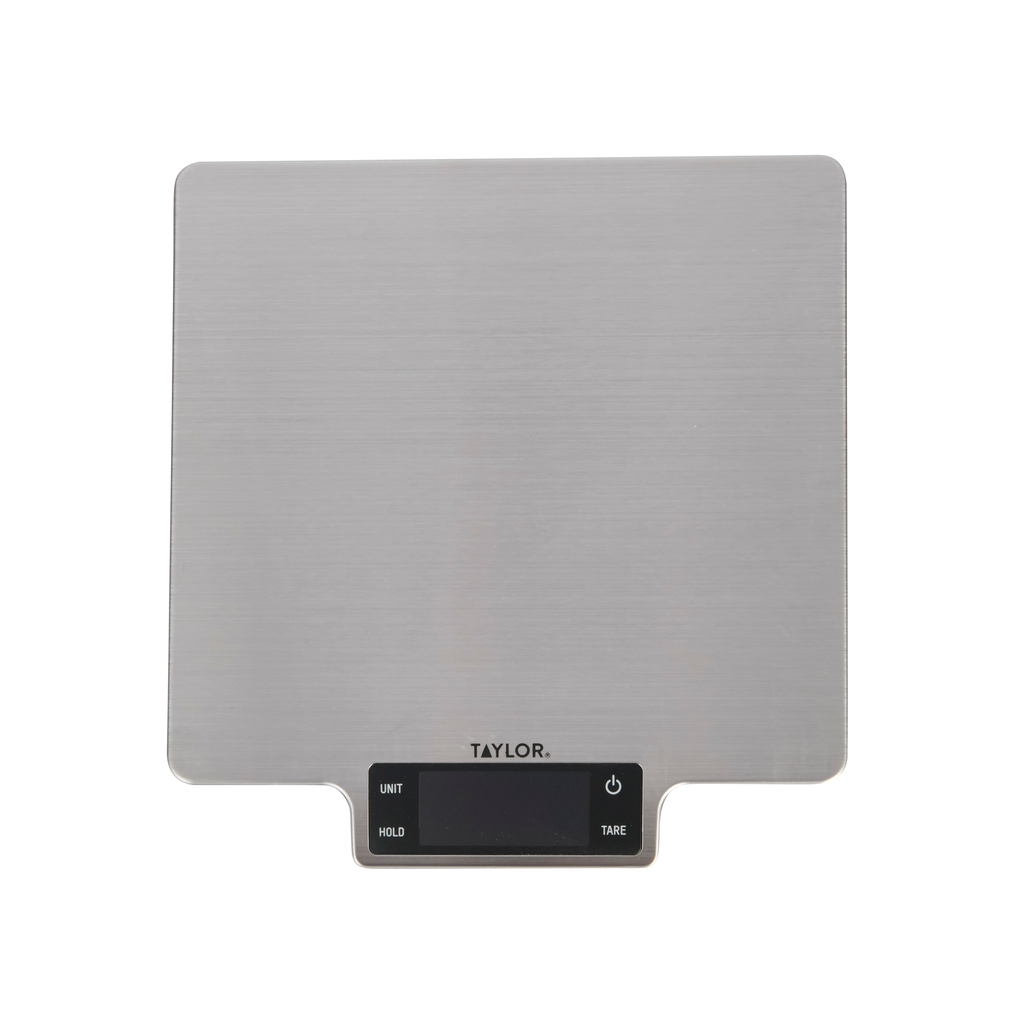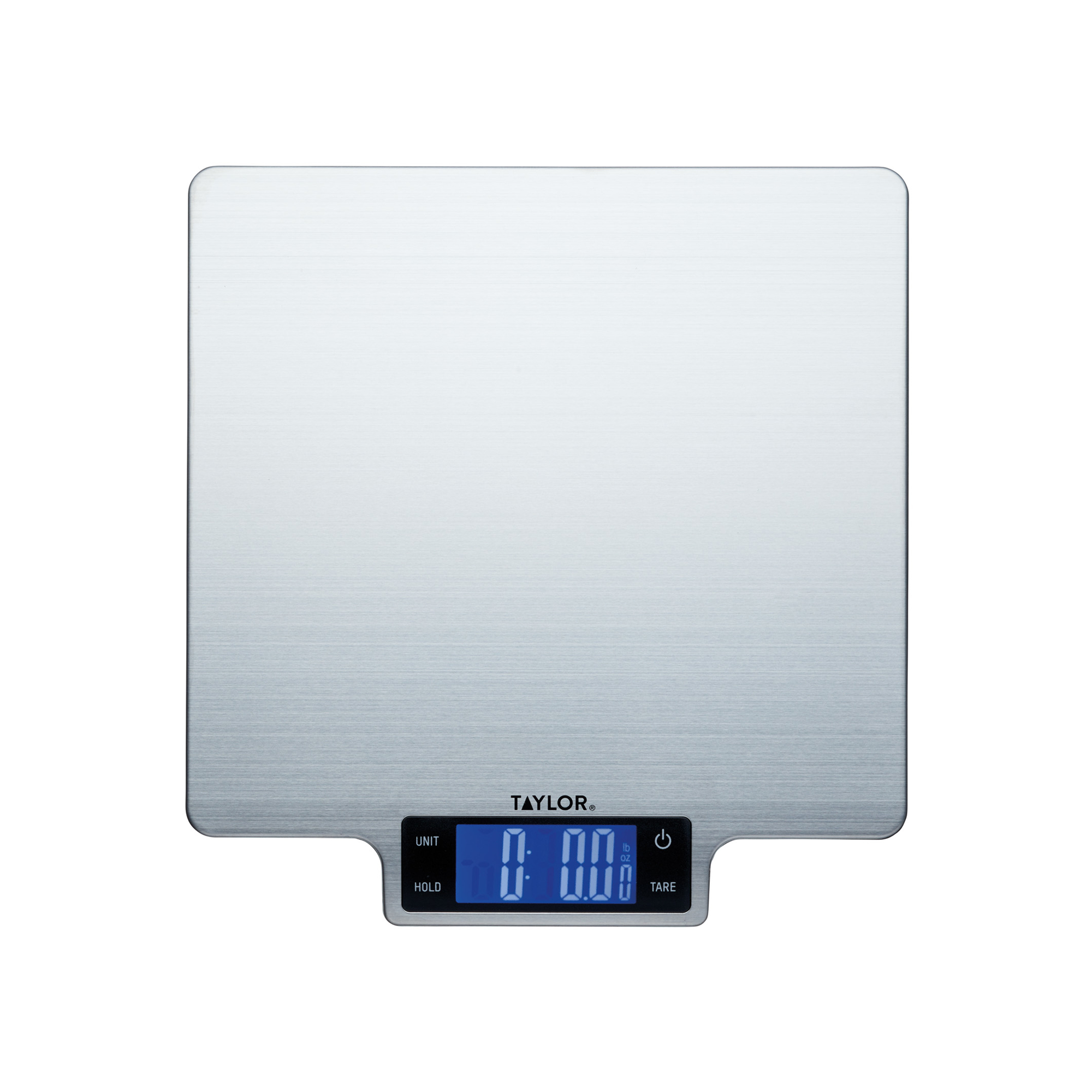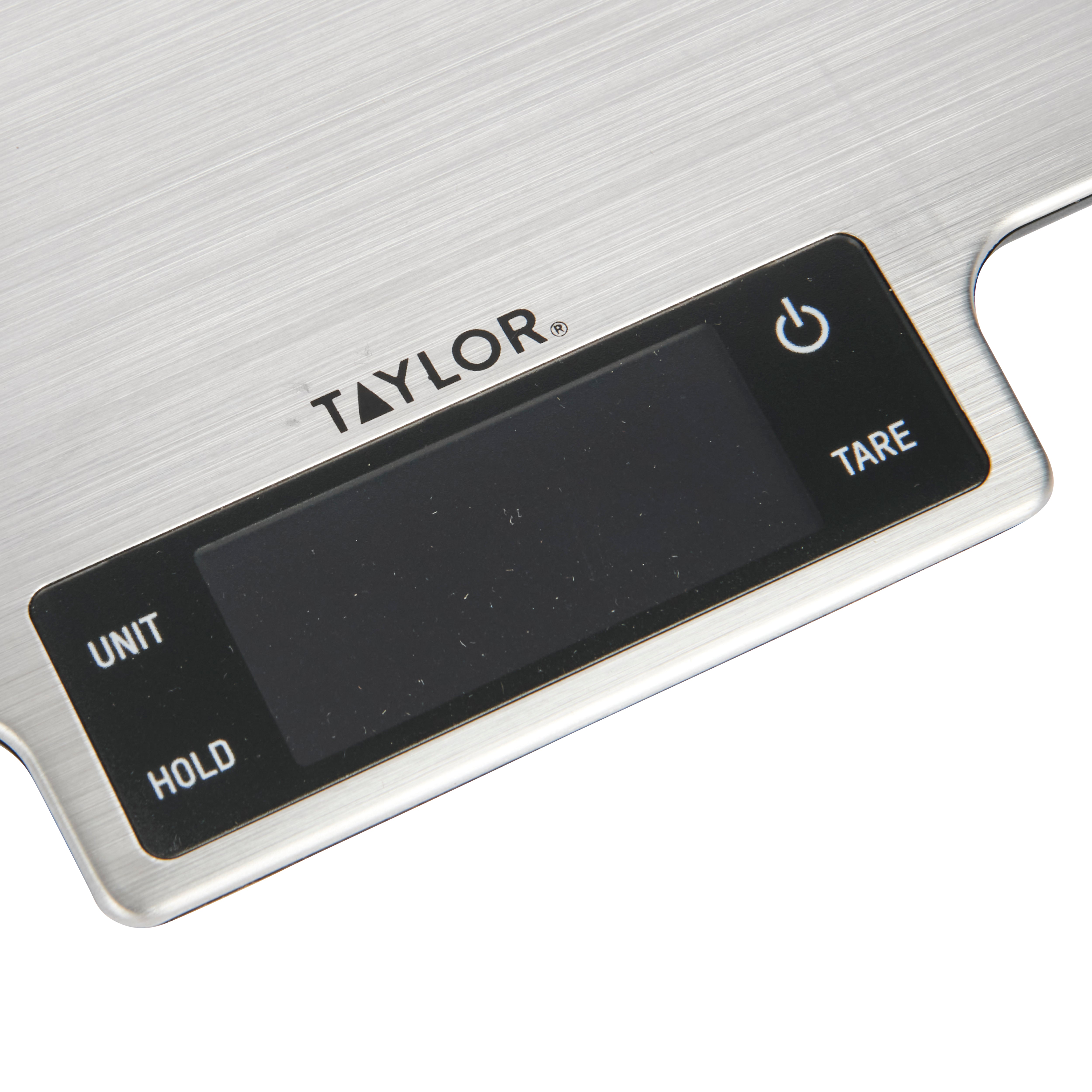 Weigh those bigger ingredients, or bulk quantities with greater precision. Fresh melon or slow-roasted mutton: with a large stainless steel platform, a 10 kg / 10 L capacity, and a high-precision sensor, these Taylor Pro digital kitchen scales are perfectly suited for accurately weighing a variety of different ingredients. The large platform measures 24 x 22 cm (9½ x 8½ inches), making it ideal for measuring ingredients in mixing bowls too. There's no need for any awkward pre-measuring or subtraction sums. The tare function allows you to zero out bowl and container weights before you add your ingredients for measuring. These digital scales let you measure liquid ingredients, such as water, milk and stock, too. Touch the 'UNIT' button and its display will switch between pounds (lbs), ounces (oz), grams (g) and millilitres (ml), so you can accurately follow your favourite recipes - to the letter. Includes a 20-year guarantee.