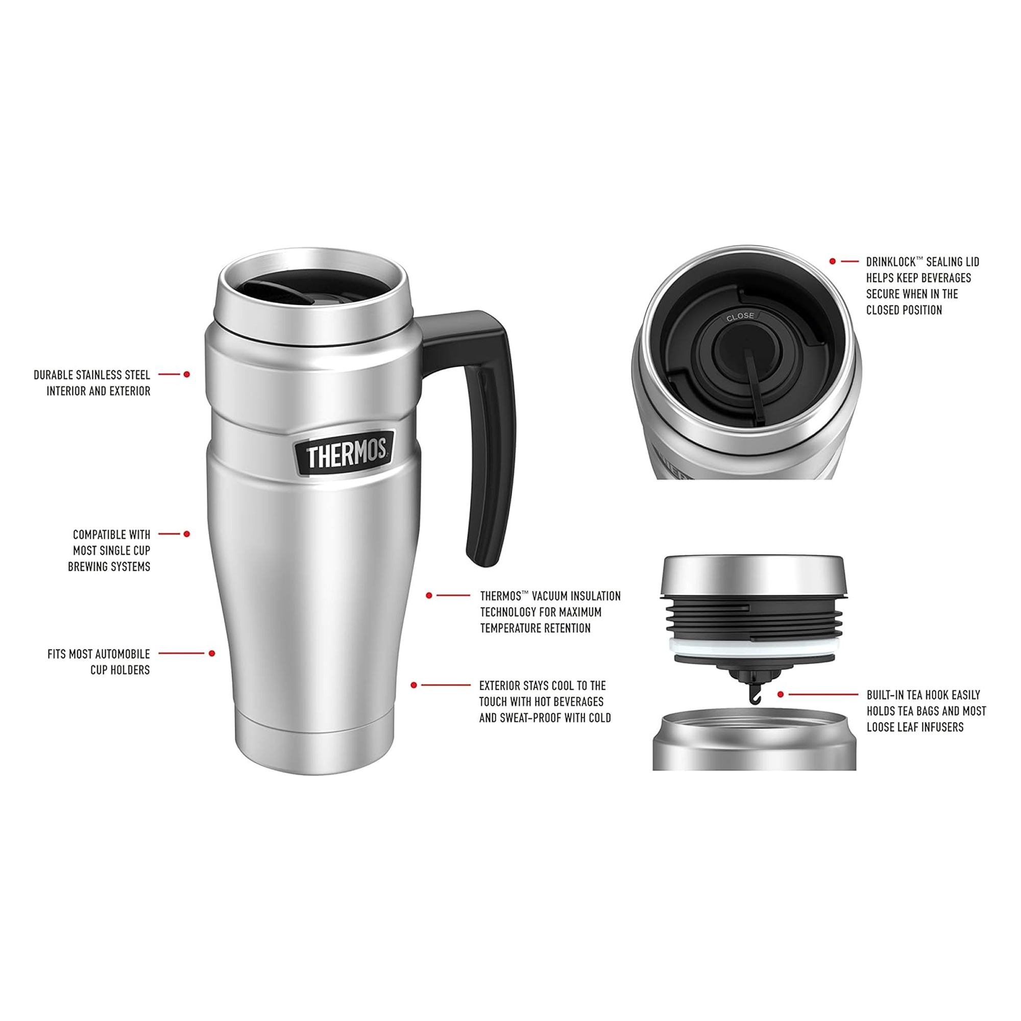 Thermos™ vacuum insulation technology for maximum temperature retention, hot or cold