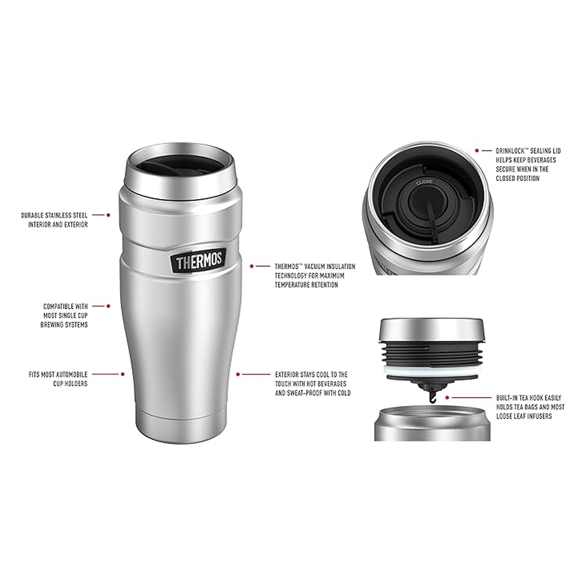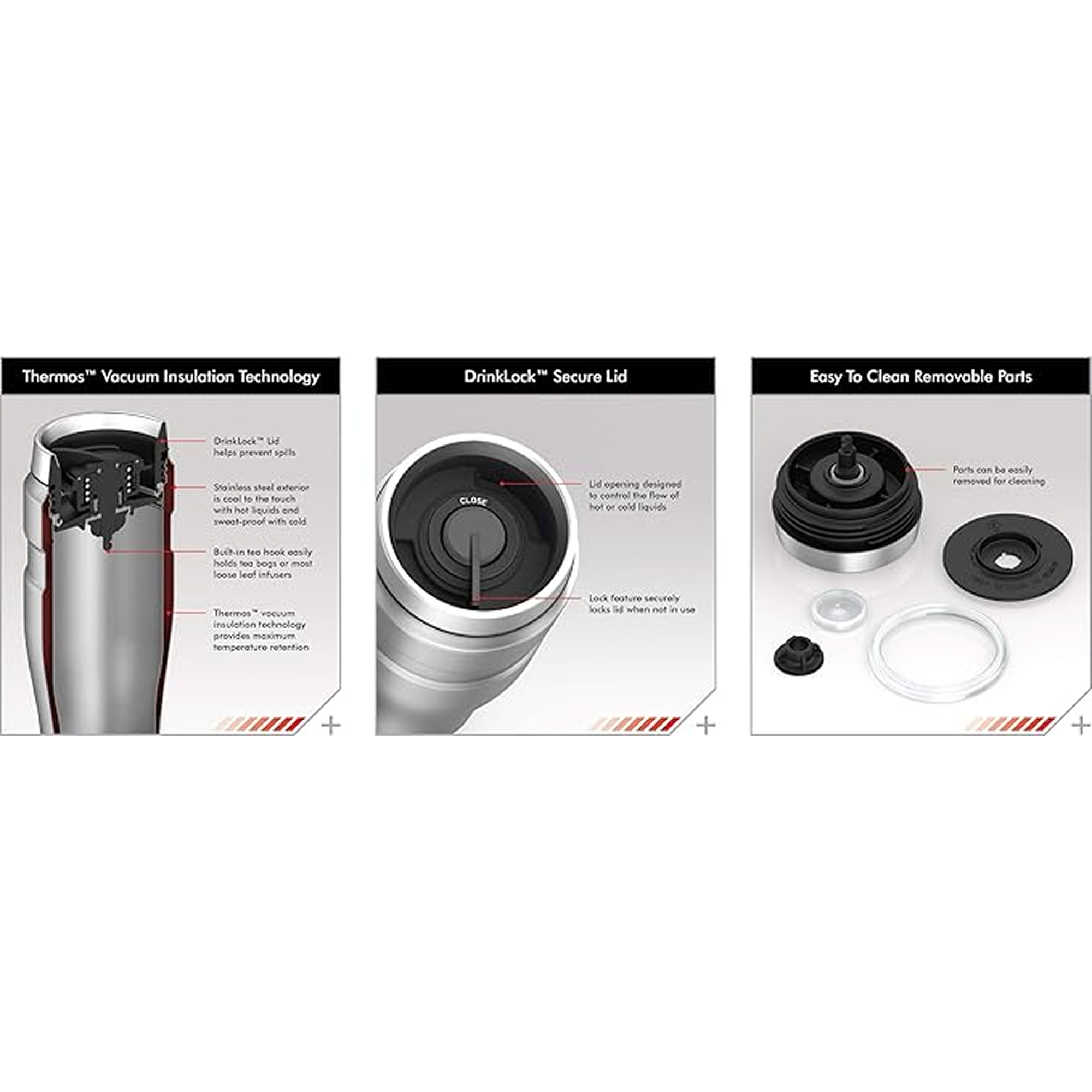 Thermos™ vacuum insulation technology for maximum temperature retention, hot or cold